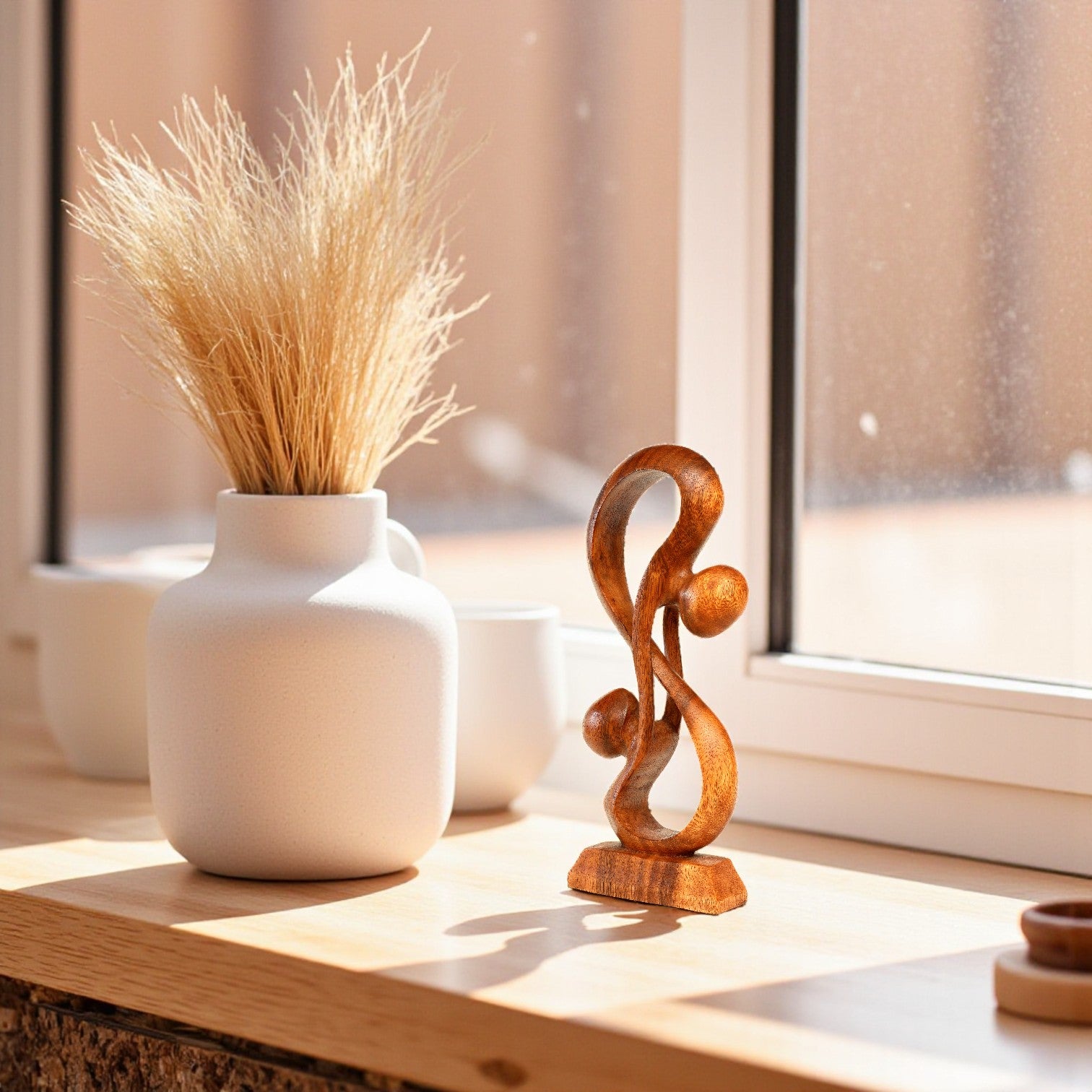 12" Wooden Handmade Abstract Sculpture Statue Handcrafted "Hold Me Tight" Gift Decorative Home Decor Figurine Accent Decoration Artwork Hand Carved